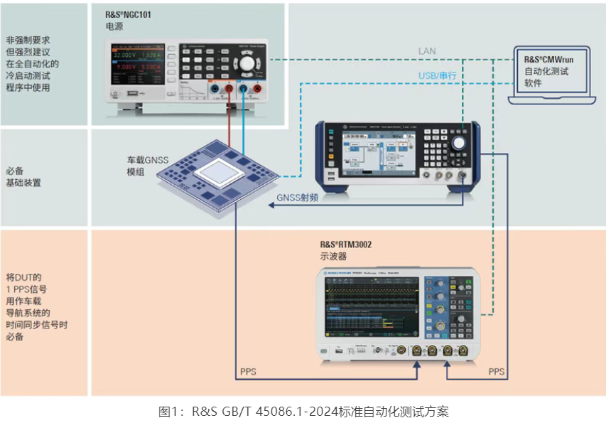 GB/T 45086.1-2024标准主要规定了车载定位组件的技术要求和试验方法两大部分,测试包括功能、性能、健壮性、射频信号协调和车规要求。相比其他导航标准,该标准从不同维度增加了测试用例。GNSS多模多频要求四模且北斗至少双频,具备北斗独立、北斗优先和北斗单模能力;射频信号协调测试要求具备射频信号协调测试能力,其高斯白噪声AWGN需满足附录要求;授时性能测试(如支持)要求使用示波器完成接收机1PPS测试;健壮性测试要求接收机具备处理卫星导航系统特殊事件的能力。R&S基于导航信号模拟器和示波器提供完整测试解决方案。该方案还具备拓展性,便于用户开展诸如紧急呼叫、导航干扰欺骗、电磁兼容等测试。目前,该方案已服务于主流的芯片厂商、零部件厂商、整车厂和检测机构,并可平滑过渡到GB 45672-2025《车载事故紧急呼叫系统》的相关测试。